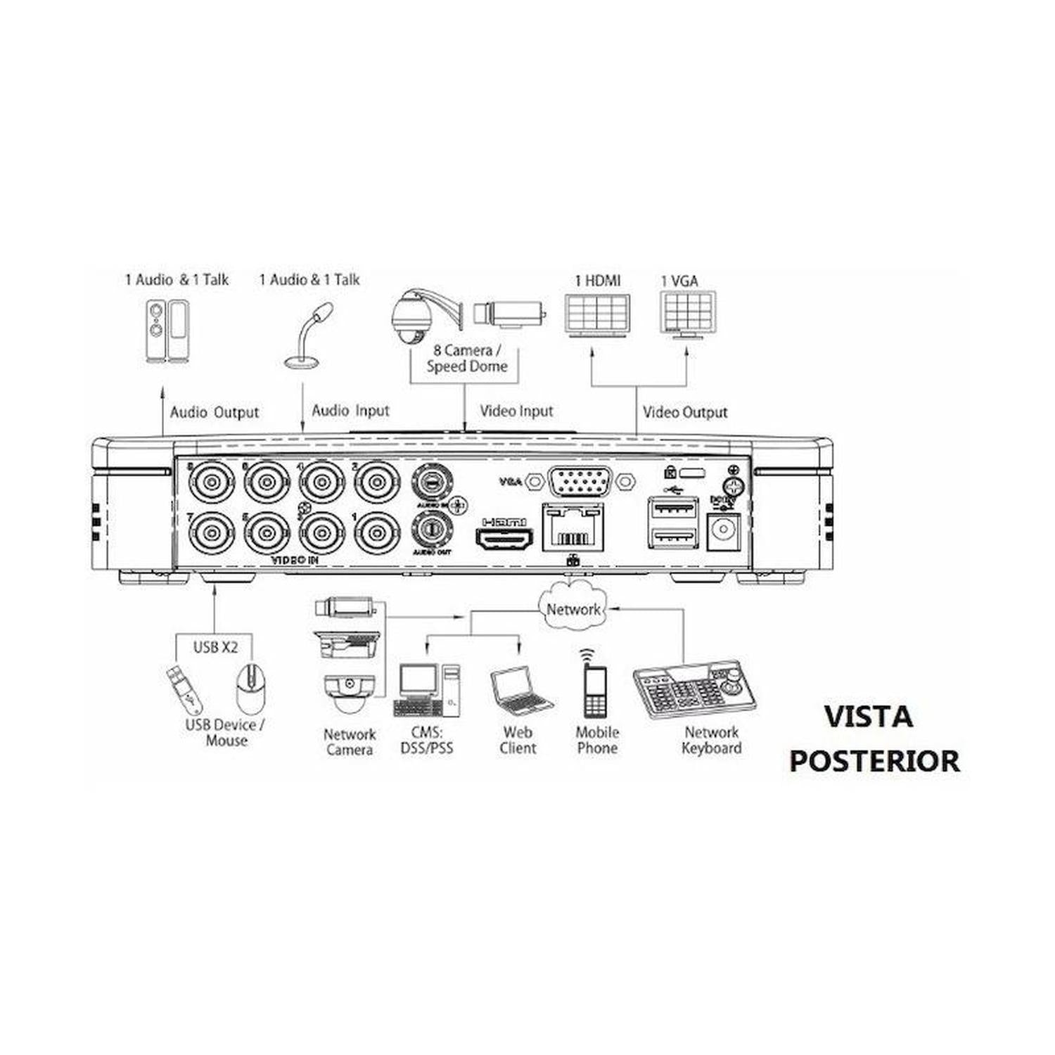 Soporta las tecnologías HDCVI / AHD / TVI / CVBS además de cámaras Ip, estas se agregan en 2 canales adicionales ( 6Mp ).