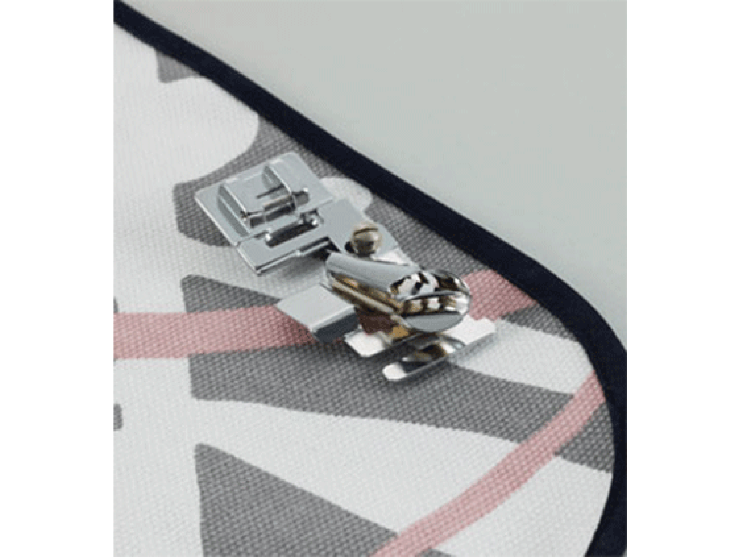 El diseño del prensatelas ribeteador de brother te permitirá colocar una cinta bies ya preparada o doblar y colocar tiras bies pre cortadas correctamente para coser fácilmente al borde de una tela.